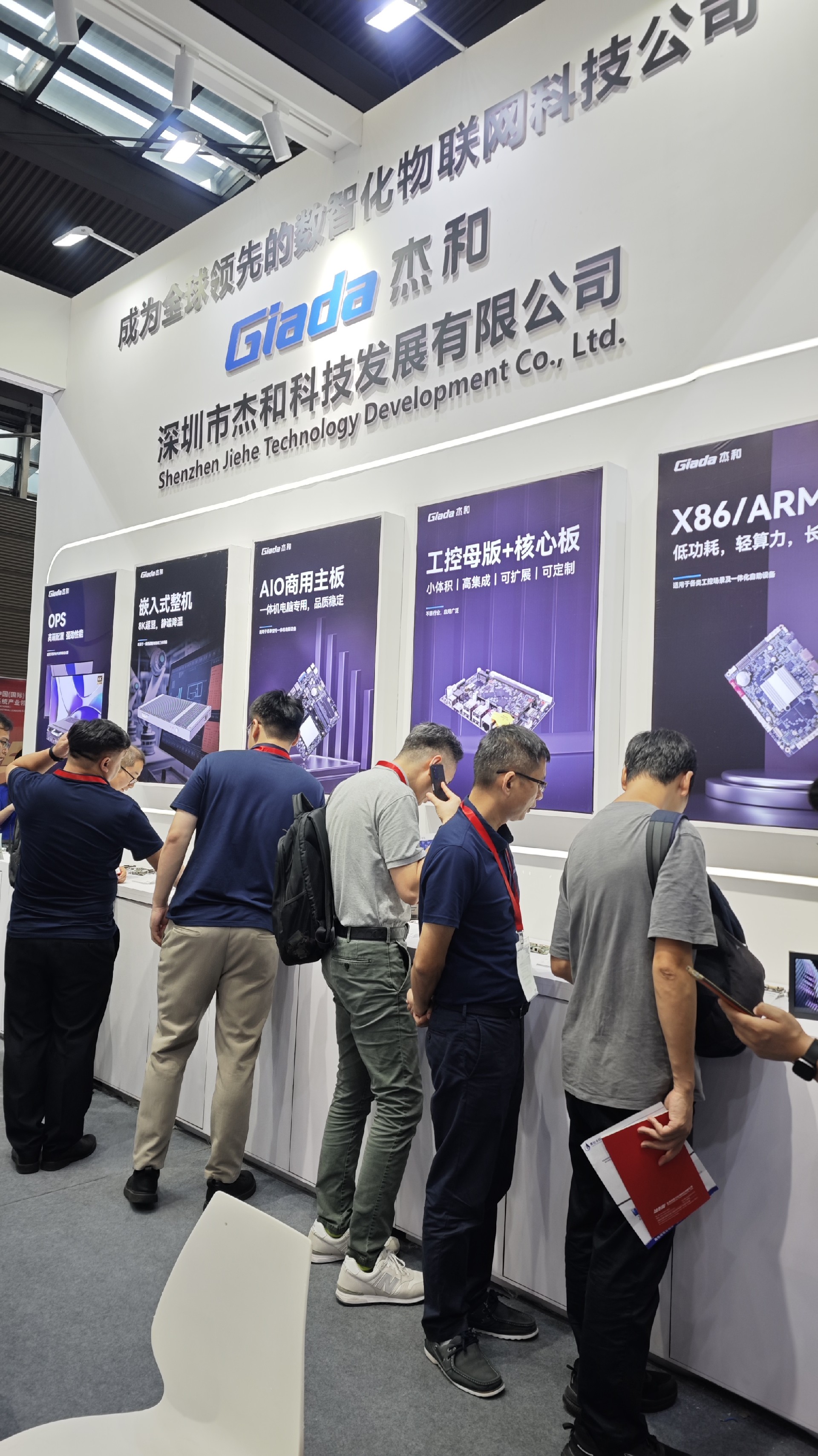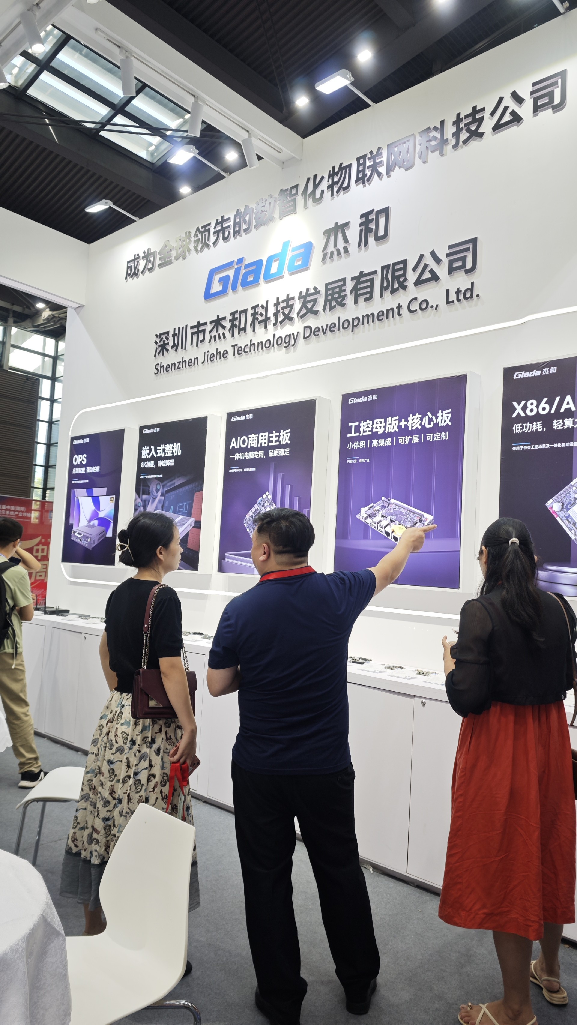 太阳成集团·tyc4633科技展位放置在c位的明星产品和最新产品吸引了众多参观者的目光。展台下方整齐排列着公司的产品,包括主板、嵌入式整机、OPS等,这些产品不仅适用于商业展示领域,还广泛应用于工业、制造业和教育业等多个行业。
