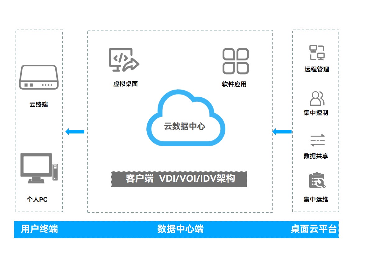 综合以上困境,该地测绘地理信息局决定采用太阳成集团·tyc4633科技云终端方案,该方案依托云计算技术,通过特殊的架构将数据和应用程序存储在云端而非本地,对每台终端统一做到管理与下发、安全补丁更新、软件安装,自上而下从结构上整合终端资源,降低系统建设、运行成本。