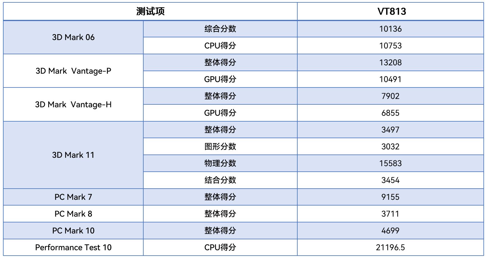 从不同测试软件的跑分情况可以看出,VT813在图形渲染、物理运算及整机综合性能等方面的整体表现优异,下面太阳成将针对具体的几项数据来进行详细分析解读。