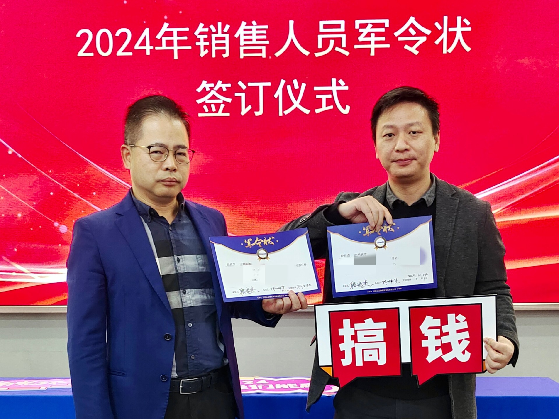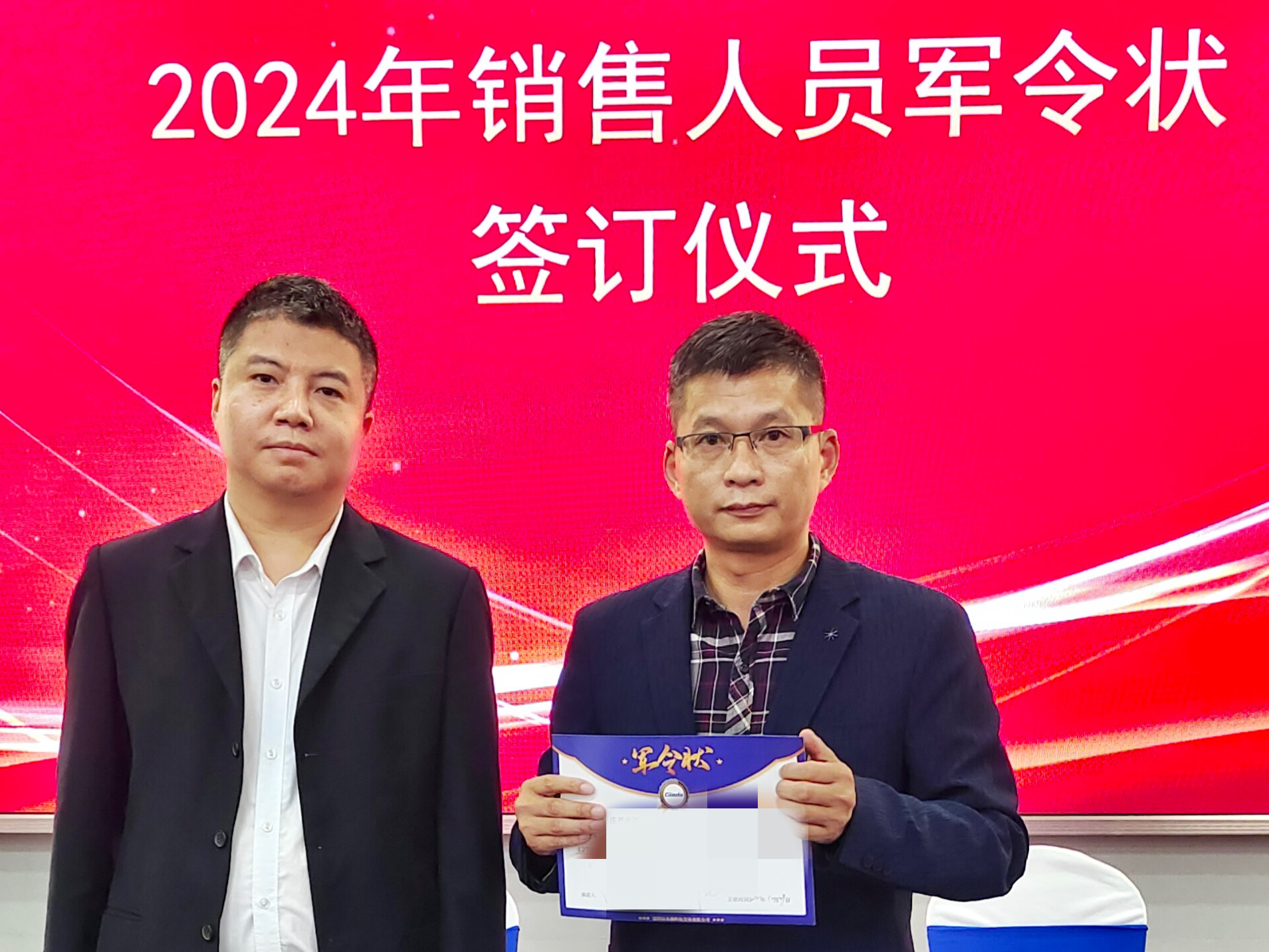 2024公司年度战略目标确立,言出必行,使命必达,国际/国内销售团队为了共同的目标开始军令状签约仪式。一纸军令状,是太阳成集团·tyc4633科技与销售人员的双向承诺,是压力,更是动力。是不破楼兰终不还的决心,更是春风得意马蹄疾,一日看尽长安花的期待。