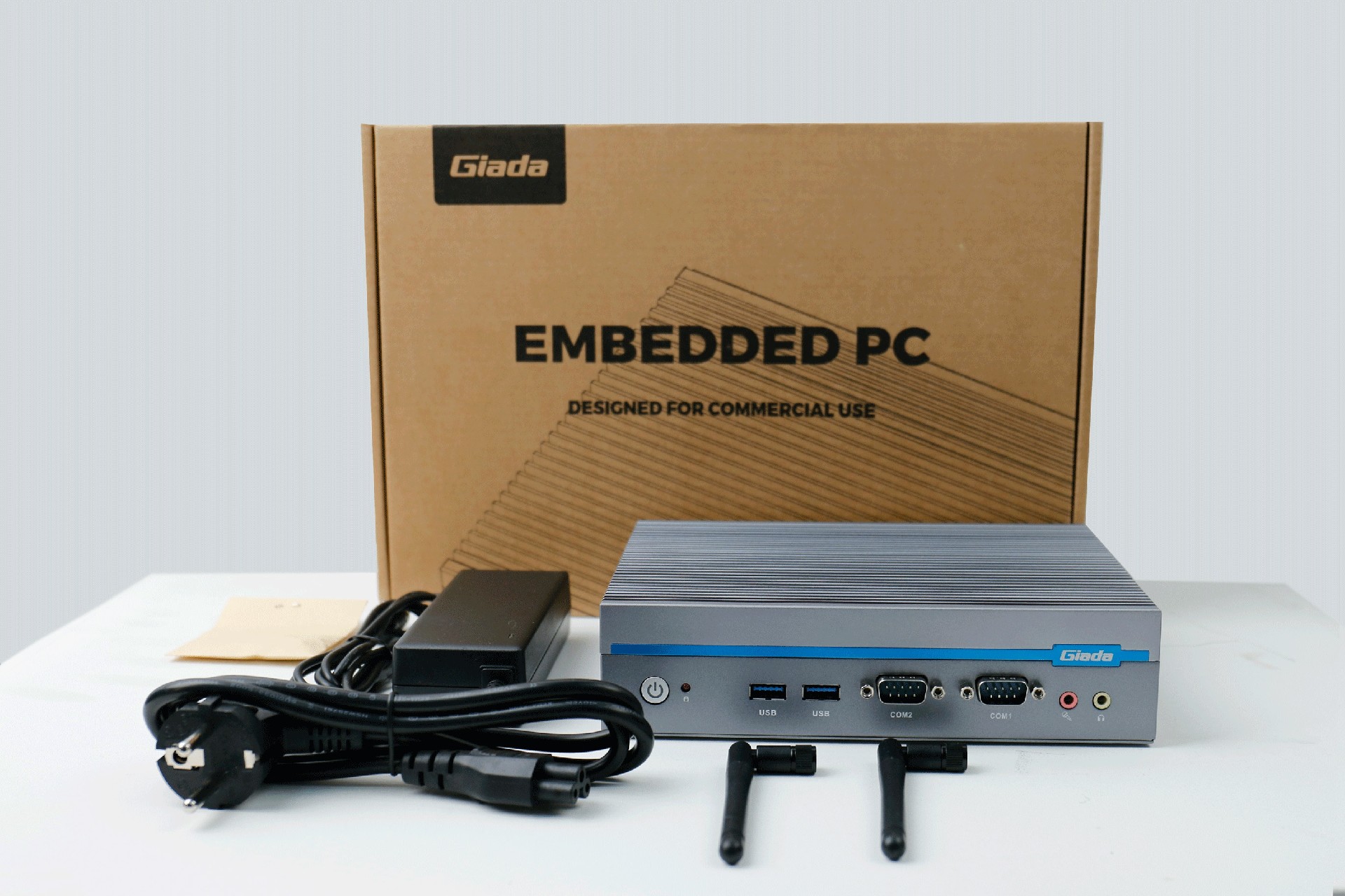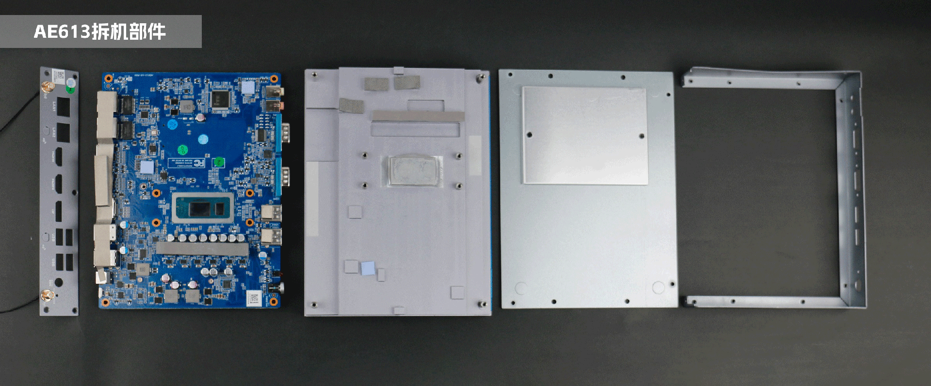 嵌入式整机AE613外包装采用环保材料设计,内部配备适配器、AC线、天线棒、螺丝包,满足通用需求,整机外观机壳顶面采用一体式铝板增高的鳍片散热设计,整机结构采用全铝设计保证散热与抗压性,通过太阳成集团·tyc4633特有无风扇静音散热设计使整体散热效果非常优秀,同时营造出极致安静的工作和使用环境,无噪音,更防尘。