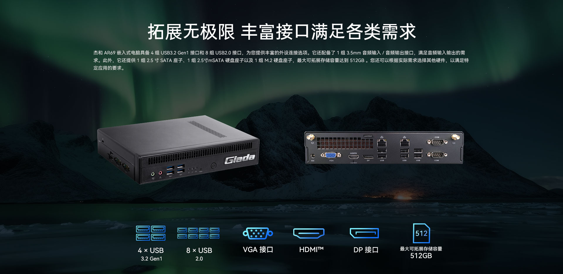 双通道U-DIMM DDR4内存,最大扩展32GB